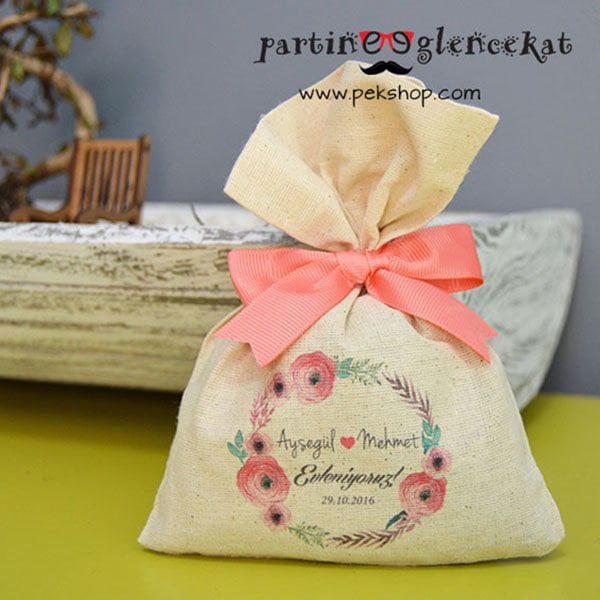 Kişiye Özel Baskılı Lavanta Kesesi Nikah Şekeri