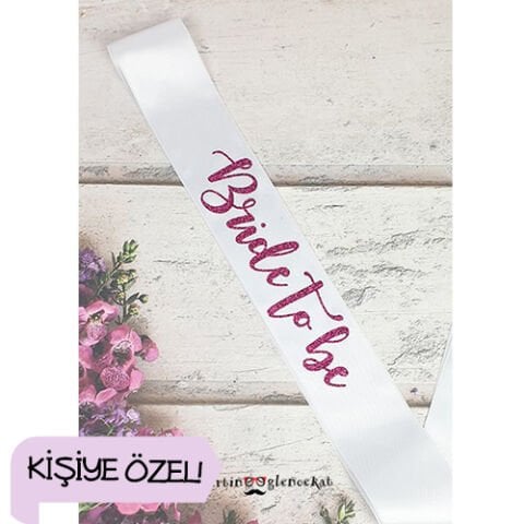 Beyaz renk kuşak üzerine fuşya glitter baskı yapılır.
