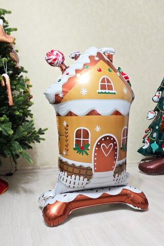 Kurabiye Evi Yılbaşı Balonu Ayaklı Şeker Evi Ginger House Folyo Balon 120cm