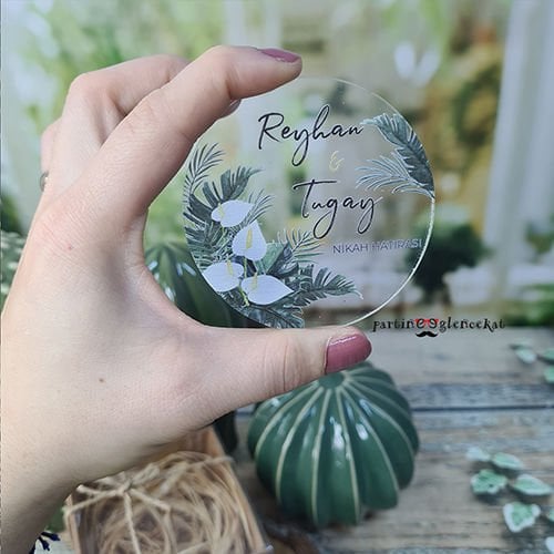 Kişiye Özel Tasarım Monstera Zambak Konsept Pleksi Magnet Hediyelik Nikah Şekeri