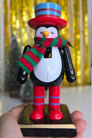 Sevimli Penguen Fındıkkıran Masa Üstü Süs Obje Atkılı Penguen Yılbaşı Masa Süsü 16cm