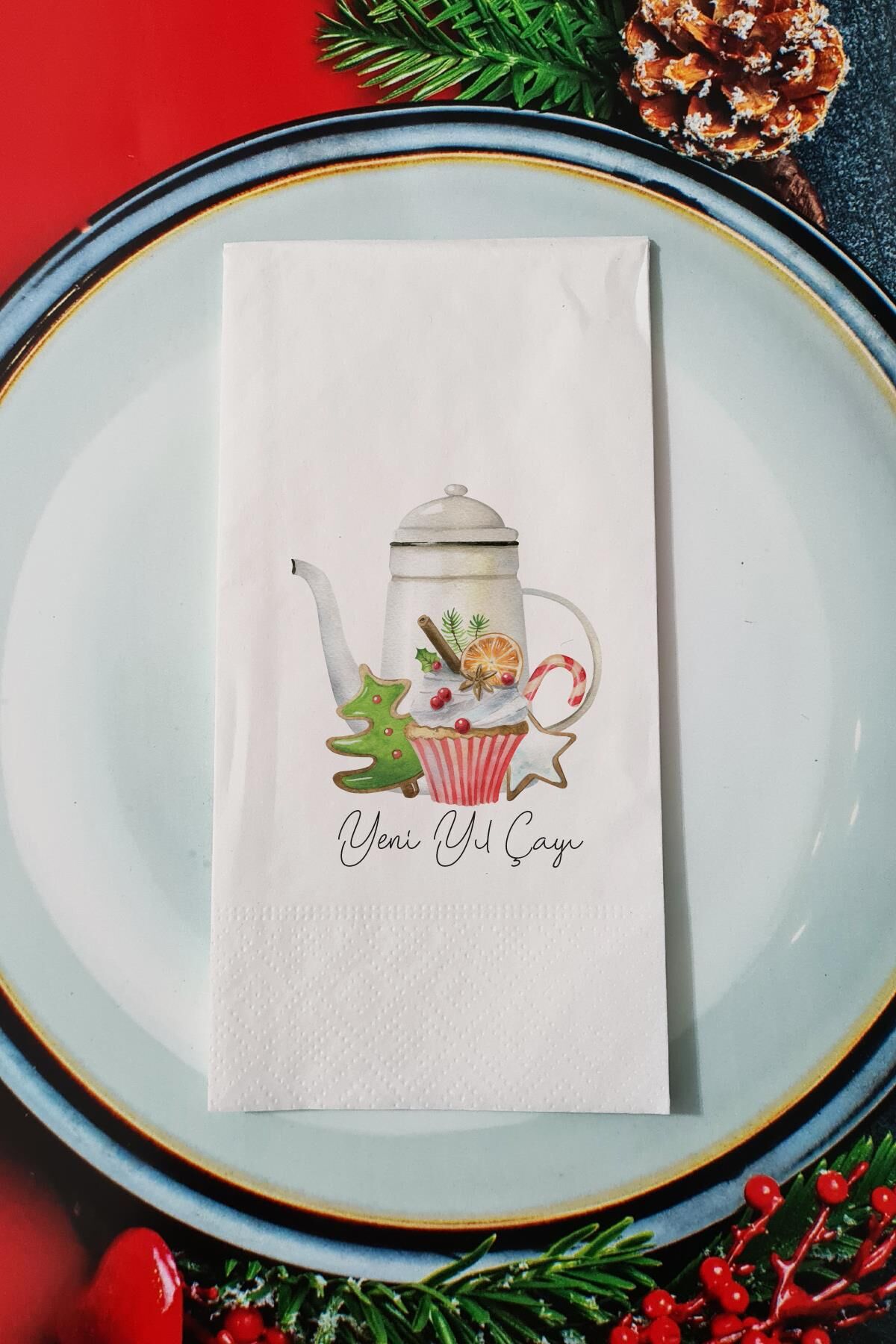 Yeni Yıl Çayı Yazılı Yılbaşı Kurabiyeli Yeni Yıl Sunum Peçetesi